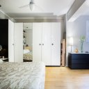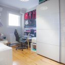 La zona notte comprende due camere singole climatizzate – una delle quali con doppia esposizione e arredi integrati – e un primo bagno elegante con vasca Jacuzzi incassata e termoarredo. A completare il reparto notte, una spaziosa camera matrimoniale completamente insonorizzata, con bagno en suite dotato di doppio lavabo su misura, sanitari e rubinetteria Jacuzzi, doccia multifunzione con cromoterapia e seduta rivestita in mosaico.