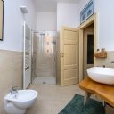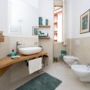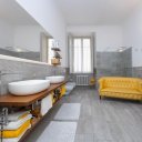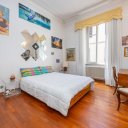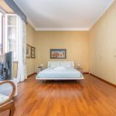 La zona notte comprende tre camere matrimoniali generose, tutte valorizzate da soffitti alti, parquet originale e particolari storici di pregio. Il bagno padronale, anch’esso ristrutturato, è una vera stanza da bagno, dotata di vasca e doccia, con finiture eleganti e ampiezza superiore alla norma.