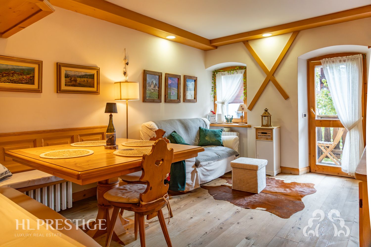 Al primo piano di una residenza raffinata, questo appartamento incarna l’autenticità e il fascino delle Dolomiti. I pavimenti e gli arredi in legno massello, realizzati su misura da artigiani locali, creano un’atmosfera calda e avvolgente. Il soggiorno, luminoso e con accesso diretto alla terrazza panoramica, offre scorci mozzafiato sulle vette circostanti, regalando momenti di puro relax.