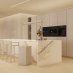 Interni raffinati: cucina completa di tutto (Cucine italiane Pedini, elettrodomestici Miele), finiture in travertino, specchi smart e sanitari di alta gamma