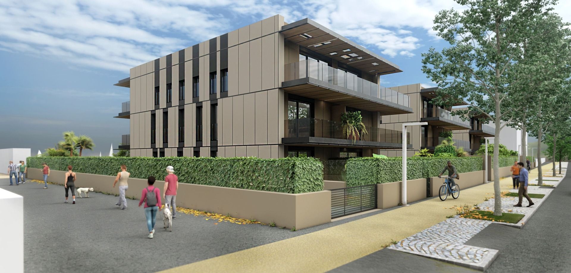 Il complesso si compone di tre eleganti palazzine dall’architettura contemporanea, progettate per garantire massima luminosità, privacy e un dialogo costante con il paesaggio marino.