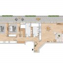 La zona notte comprenderà due camere da letto, di cui una con cabina armadio, e due bagni.