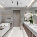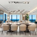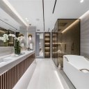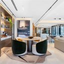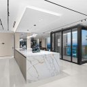 Questa dimora esclusiva nasce dall’unione impeccabile di due unità, offrendo viste panoramiche spettacolari sull’oceano e sullo skyline urbano da ogni ambiente. Gli interni esprimono un’eleganza senza tempo, con pavimenti in marmo Bianco Ondulato, una cucina Ornare su misura con ripiani in Calacatta e un raffinato equilibrio tra materiali pregiati e design contemporaneo.