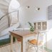 Un’elegante scala in muratura a chiocciola, illuminata da ampio lucernario, conduce al secondo livello con due camere, caratteristico terrazzo a pozzo, bagno con rivestimento in rivestimento a mosaico di vetro azzurro. Pavimenti in resina colorata al secondo piano.