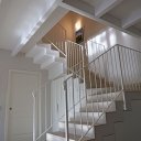 1° Piano: La zona notte ospita una raffinata camera padronale con cabina armadi, affacciata su un grazioso terrazzino attrezzato. Completano il piano 2 camere da letto matrimoniali di cui una valorizzata dall’ampio loggiato. Il corridoio centrale, ampio e ben organizzato, è arricchito da armadiature su misura. I servizi sono doppi, entrambi finestrati, uno con vasca e l’altro con doccia. Il piano beneficia inoltre di un ulteriore ingresso indipendente dal vano scala condominiale.