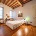 Il parquet caldo e luminoso accompagna lo sguardo verso i magnifici soffitti affrescati, creando un affascinante dialogo tra arte e architettura. Le ampie altezze conferiscono respiro e solennità agli spazi, mentre i corridoi arricchiti da armadi su misura scandiscono il percorso interno con equilibrio ed eleganza.