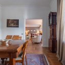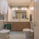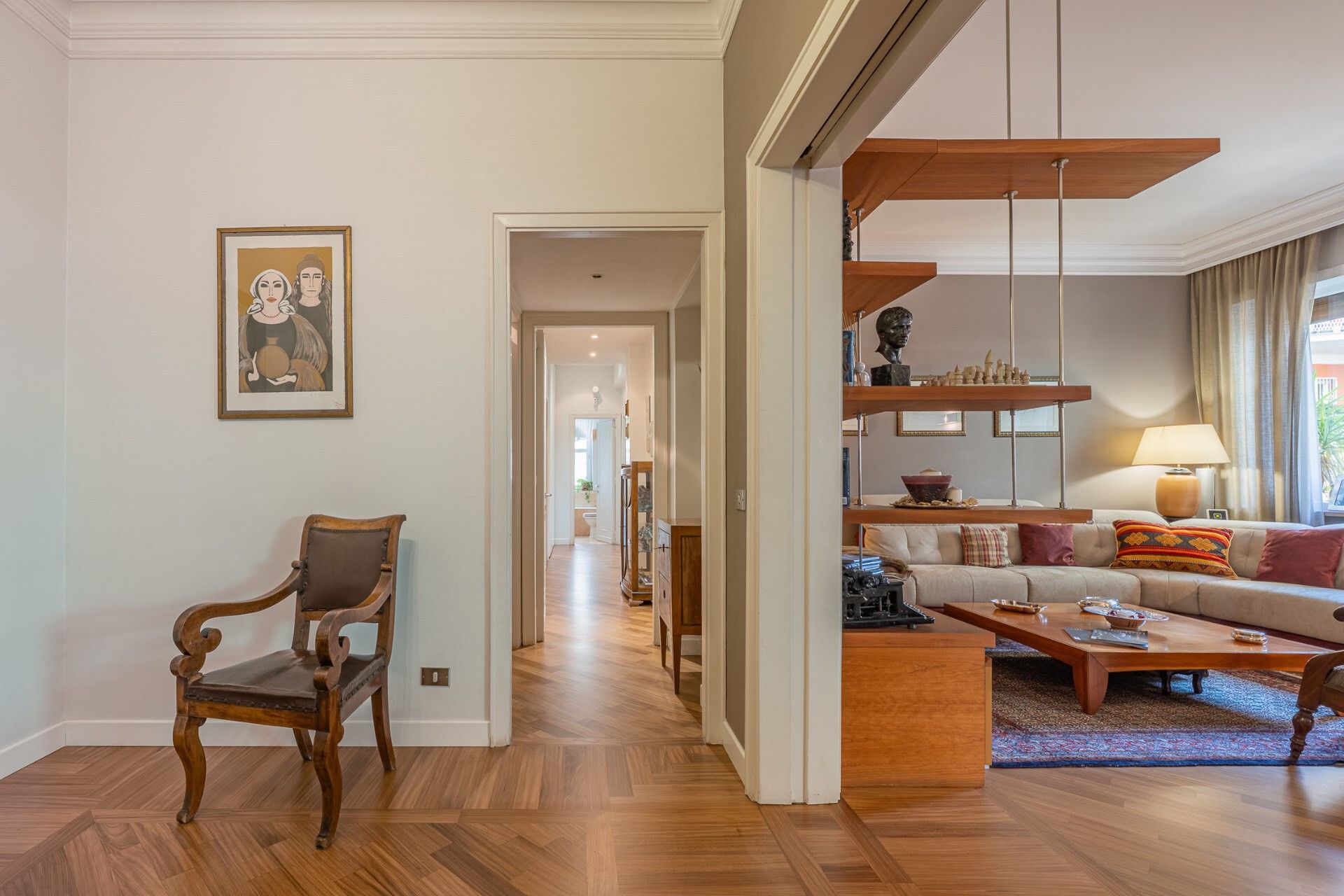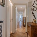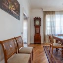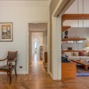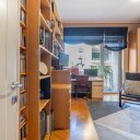 L’immobile si distingue per una distribuzione degli spazi razionale e generosa, tipica delle abitazioni concepite per una vita familiare strutturata. L’ingresso principale introduce a un ambiente ordinato e ben articolato, con corridoi e disimpegni che accompagnano in modo naturale ai diversi ambienti della casa. È presente anche un secondo ingresso, in prossimità della cucina e della zona di servizio, collegato a una scala separata del fabbricato: un elemento che racconta il carattere esclusivo del condominio e l’impronta nobile dell’epoca in cui fu realizzato l’edificio e che oggi offre una flessibilità d’uso particolarmente apprezzabile.