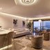 Il soggiorno di 38 m² con cucina a vista gode di un’ottima luminosità e di finiture curate, valorizzate da linee architettoniche eleganti. La terrazza offre una splendida vista panoramica sul mare.