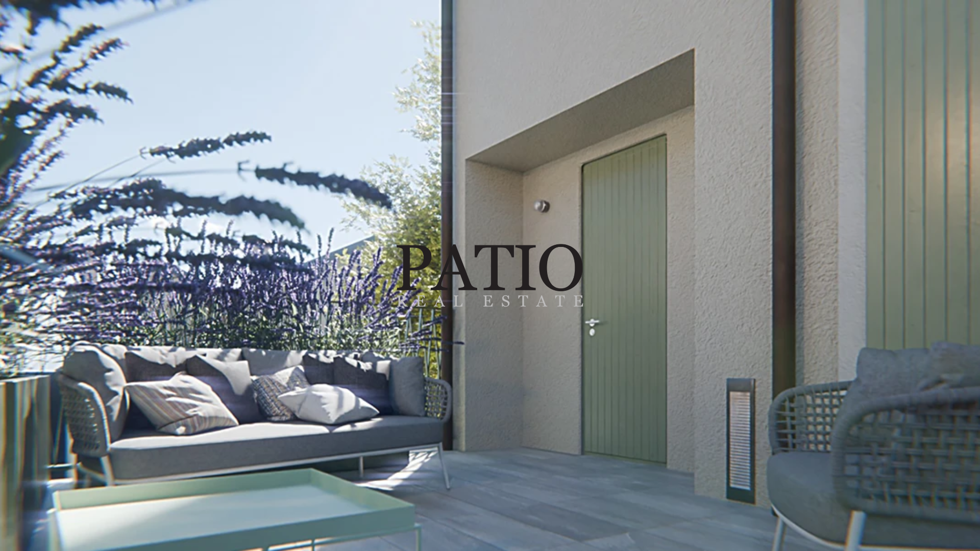 L’ingresso, attraverso la terrazza privata, conduce a un disimpegno che apre sulla zona giorno open space con cucina a vista. Le ampie portefinestre creano una connessione fluida tra interno ed esterno, valorizzando la doppia esposizione con affaccio diretto sulla terrazza e su un balcone rivolto a Sud. Sullo stesso livello è presente un bagno/lavanderia.