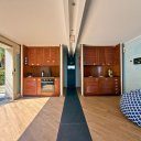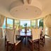 La disposizione interna dell’immobile è abbastanza unica e difficilmente replicabile, in quanto troviamo due zone giorno di grande rilevanza al primo e secondo piano, con la caratteristica forma a semicerchio, che affacciano direttamente sul lago, permettendo di goderne appieno la bellezza e la spettacolarità. A conferma di questo, il grande tavolo rotondo situato nel living del primo piano è posizionato su una pedana rotante per fare in modo che tutti i commensali possano apprezzare le bellezze dello straordinario panorama. Al piano superiore (secondo e ultimo) troviamo un’ulteriore zona living, che replica in parte il piano sottostante, con vista se possibile ancora migliore in quanto in posizione più elevata.