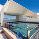 La scala sospesa in rovere e vetro conduce al piano superiore, dove è presente una zona giorno vista mare con accesso alla terrazza panoramica dotata di piscina a sfioro: luogo ideale da dove ammirare l’infinito azzurro del mare di Gallipoli. Completano il super attico: cucina abitabile, ampio terrazzo retrostante, camera da letto matrimoniale e bagno.