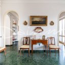 L’ingresso, ampio e scenografico alla genovese, introduce a un elegante salone e a una raffinata sala da pranzo. La cucina è abitabile e ben separata.
