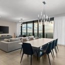 Tra le unità più grandi dell’edificio, la residenza vanta la planimetria più ampia, con circa 230 m² di spazi interni perfettamente distribuiti, comprendenti 4 camere da letto, 4 bagni completi e un elegante bagno di servizio. Gli ambienti sono stati progettati e arredati professionalmente dal celebre interior designer Steven G, con finiture di altissimo livello, texture ricercate e un’estetica moderna, sofisticata e coerente in ogni dettaglio.