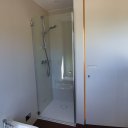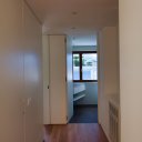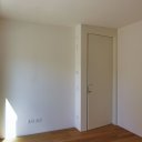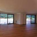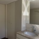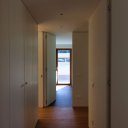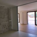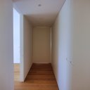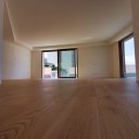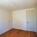 La zona notte ospita tre camere matrimoniali e due bagni, tutti realizzati con materiali di alta qualità. Armadi a muro discreti, incastonati nelle pareti, offrono ampi spazi di contenimento senza interrompere l’armonia visiva. Il bianco delle superfici e il legno naturale del pavimento conferiscono a ogni ambiente una sensazione di luminosità e calore.