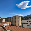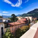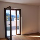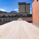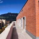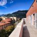 Uno degli elementi architettonici più significativi è il grande balcone che percorre l’appartamento su tre lati — da est a ovest passando per il sud — come un nastro continuo. Questo balcone si allarga in corrispondenza del lato sud-ovest, trasformandosi in un’ampia terrazza panoramica che rappresenta il centro vitale della casa. Da qui, lo sguardo può abbracciare l’intero arco montano che circonda la città, fino a perdersi nei profili delle Dolomiti trentine. Ed è proprio da questa terrazza che, nelle giornate più silenziose, si può udire distintamente il suono profondo e solenne della Campana dei Caduti, simbolo di pace e memoria, che ogni sera risuona dal Colle di Miravalle.