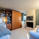 La dependance, anch’essa su due livelli e completamente ristrutturata, è dotata di ampie vetrate che offrono una bellissima vista sulle colline verso Bologna. Al piano terra si trovano un soggiorno con angolo cottura e un bagno, mentre al piano superiore c’è una camera da letto matrimoniale con piccolo balcone.
