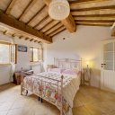 L’immobile presenta una terrazza pavimentata in pietra e mattoni da cui si accede all’ampia cucina luminosa, ideale per momenti conviviali. Il soggiorno con camino rappresenta il fulcro delle serate invernali mentre il bagno del piano terra offre comodità. Una scala interna in mattoni conduce al piano superiore dove si sviluppala zona notte composta da due camere spaziose e dal secondo bagno, tutto realizzato con materiali tipici toscani come travi in castagno e mezzane in cotto. A completare il piano terratroviamo una splendida cantina scavata nel tufo, dalle dimensioni generose, dove anticamente venivano frante le olivee prodotto del vino locale: nella cantina sonoconservate ancora parte dell’antica attrezzatura vinicola.