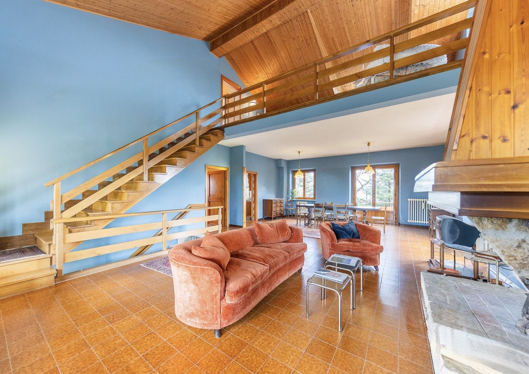 L’abitazione si sviluppa su tre livelli, con ambienti luminosi e ben organizzati: al piano terra un patio loggiato introduce alla zona giorno, dove un elegante salone con camino, una sala da pranzo con vista sul bosco e una cucina spaziosa creano spazi accoglienti e funzionali. La zona notte comprende tre camere luminose e un bagno.
