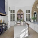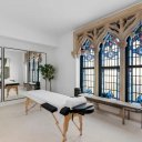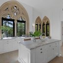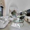 Il cuore della casa è la spettacolare Great Hall, caratterizzata da soffitti a volta alti oltre 9 metri, camini monumentali in pietra, vetrate antiche originali e lampadari francesi in bronzo fuso, che creano un’atmosfera scenografica e solenne. I pavimenti in pietra di Gerusalemme aggiungono profondità storica ed eleganza materica a ogni ambiente.