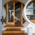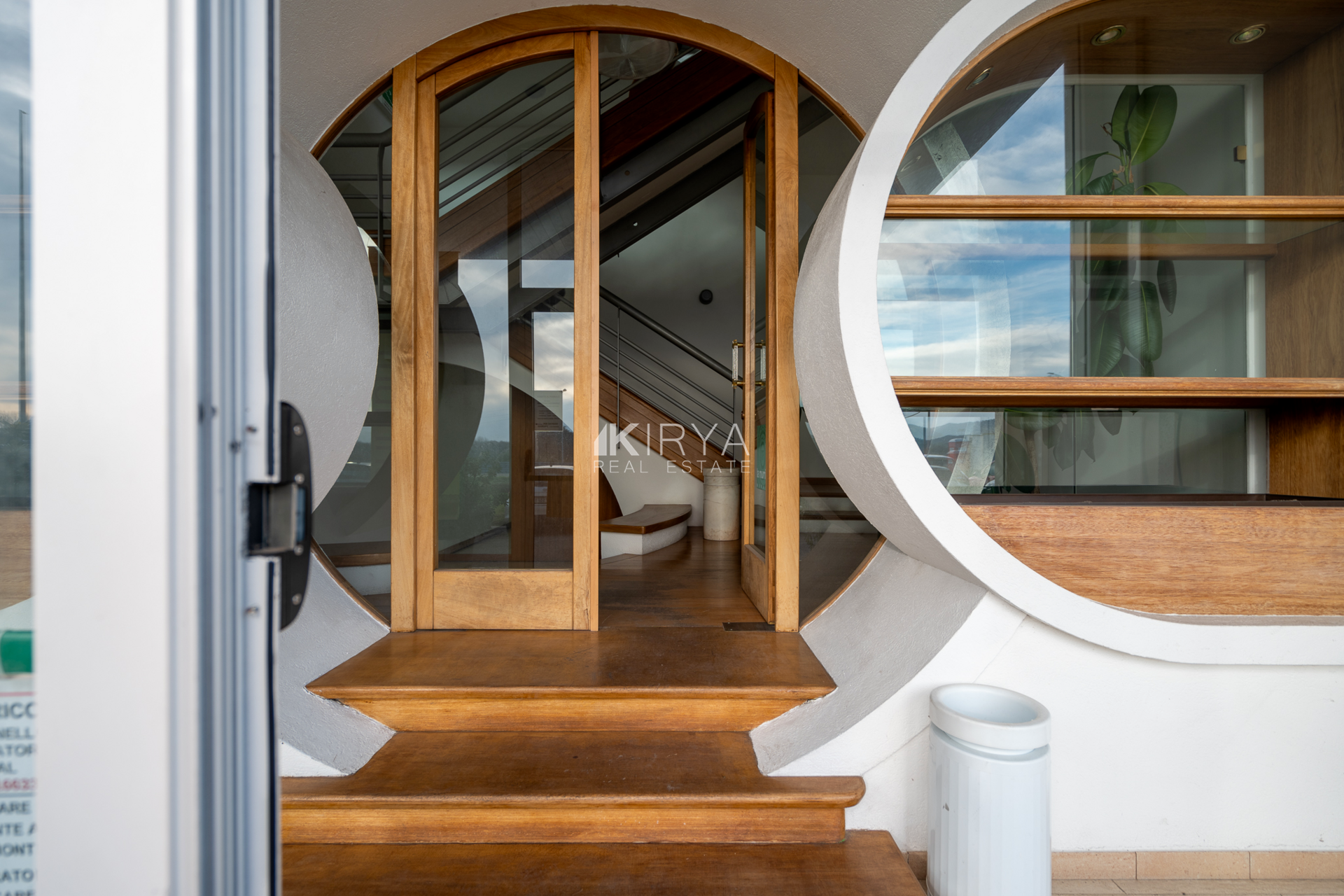 Salendo al primo piano, ci accoglie un open space espositivo luminosissimo, grazie alle ampie vetrate che avvolgono l’intera struttura, creando un ambiente che lascia letteralmente senza fiato. Questo spazio è perfetto per showroom di lusso, eventi aziendali o esposizioni che richiedono una cornice unica e scenografica.