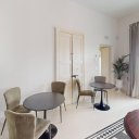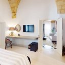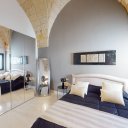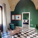 Al primo piano, un appartamento residenziale privato di 300 mq accoglie con un sontuoso salone, una raffinata sala da pranzo, uno studio, tre eleganti camere da letto e tre bagni, oltre a una moderna cucina e due terrazzi. I suggestivi soffitti a volta in pietra leccese, originali dell’epoca di costruzione, conferiscono un tocco di maestosità.