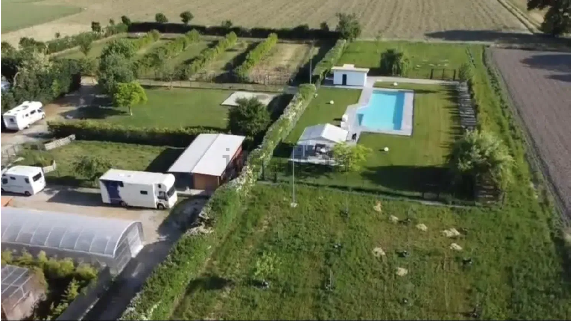 agli snodi autostradali, ma in una zona tranquilla e servita. La villa principale presenta una cucina moderna con isola, un ampio soggiorno con camino, una camera da letto padronale con cabina armadio e un bagno in marmo al piano superiore. Completano la proprietà un fienile ristrutturato, oltre quindicimila metri quadrati di terreno con recinzioni e box per animali, e una piscina con acqua salata e accesso dedicato agli animali.