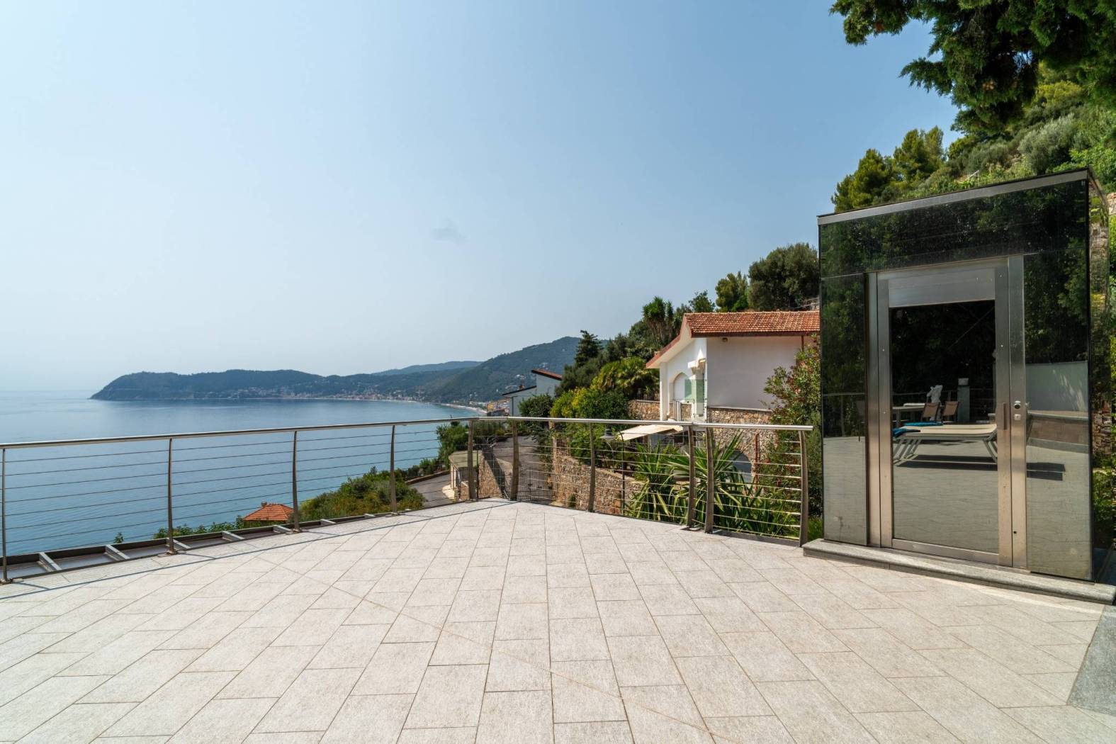 Tutta la parte esterna della casa è collegata da un ascensore panoramico privato, che accompagna ogni vostro passo con una vista spettacolare sulla costa ligure.