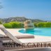 L'esterno della villa è altrettanto impressionante, con una meravigliosa piscina che si affaccia sul mare e un curato giardino da cui è possibile ammirare l’intera Porto Cervo.