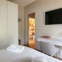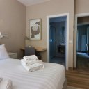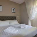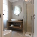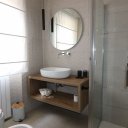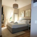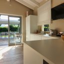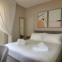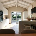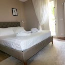 L’interno è semplicemente impeccabile. Arredato con gusto moderno, minimale e chic, tutto nei toni eleganti del bianco e panna, trasmette freschezza e raffinatezza. Al piano terra ci accoglie una grande cucina abitabile, luminosissima, con doppio accesso al patio e alla piscina: perfetta per cucinare insieme e poi mangiare all’aperto. Il soggiorno, ampio e pavimentato in chiaro, è il cuore della casa, dove abbiamo condiviso giochi, risate e momenti di vero relax. Le quattro camere matrimoniali, tutte con bagno privato, offrono il massimo del comfort, ideali anche per ospitare amici o familiari.