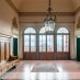 Il tutto è arricchito dalla luce naturale, che pervade la sala, data delle tre ampie vetrate affacciate su un terrazzo e sul parco della villa. Dal lato opposto della stanza vi è invece una porta che permette di uscire su una corte privata sul retro dell’abitazione.