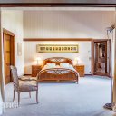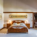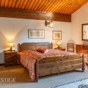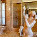 La suite padronale è un vero e proprio rifugio privato: ampia, luminosa e con cabina armadio, impreziosita da un bagno en suite in marmo rosa arricchito da una scultura originale di Franco Fiabane. Dalla camera principale si accede a un magnifico terrazzo esterno con vista sulle montagne, ideale per momenti di quiete e contemplazione. Da un ambiente adiacente si può inoltre ammirare la piscina interna dall’alto, in un raffinato legame visivo tra i diversi livelli della casa.