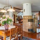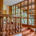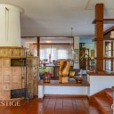 Il piano terra è pensato come un susseguirsi di spazi dedicati alla convivialità e alla condivisione: il grande salone d’ingresso con stube, la raffinata sala da pranzo e il caratteristico larin, autentico cuore della casa. Tutti gli ambienti sono avvolti da un’atmosfera calda e accogliente, esaltata dal gioco della luce e dai toni naturali dei materiali.