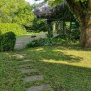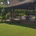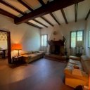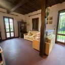 Al piano terra, l'ingresso conduce a un doppio soggiorno con camino, travi a vista e soffitti antichi a cassettoni decorati, una sala da pranzo, una cucina abitabile e un bagno. Tutti gli ambienti hanno accesso diretto al parco.