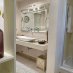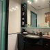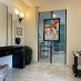 Una scala in marmo bianco conduce al piano superiore dove si trovano una camera da letto grande, una camera da letto più piccola con una porta-finestra che dà sul giardino, un bagno con doccia, un bagno con vasca idromassaggio e una camera-studio con balcone ed una stanza guardaroba.