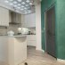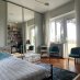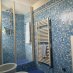 Una scala in legno conduce alla mansarda dove un open-space con camera da letto e studio è adiacente ad un grande terrazzo con vista mare e ad un bagno con mosaico blu e ampia doccia.
