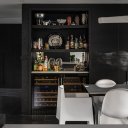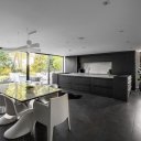 Ci sono elettrodomestici come rubinetti caldi/freddi Quooker, piani di cottura a induzione Miele a sei sezioni, lavastoviglie e forno a microonde integrati, due forni, un potente estrattore a scomparsa Airforce e frigorifero e congelatore a doppia altezza integrati CDA.