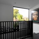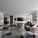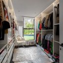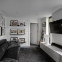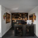 È dotata di scaffalature e cassettiere costruite a mano su misura, scaffali con illuminazione soffusa, un ripiano estraibile per la stampante, oltre a un ampio spazio aperto e all´illuminazione naturale.