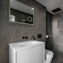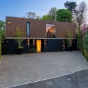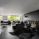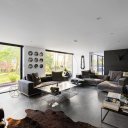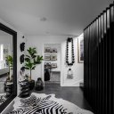 Si apre su un ampio corridoio con piastrelle in porcellana nera e riscaldamento a pavimento in tutta la casa, oltre a una porta d´ingresso in alluminio nero extra-large con 7 serrature di sicurezza.