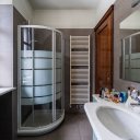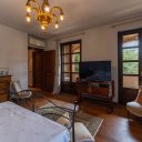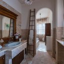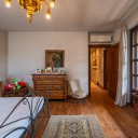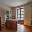 Salendo al primo piano, attraverso la scenografica scala circolare, si accede alla zona notte, caratterizzata da spazi generosi e versatili. Troviamo una cameretta pluriuso, ideale come studio o stanza per gli ospiti e due ampie camere da letto, di cui una straordinaria suite padronale, che gode di una doppia esposizione e di un meraviglioso balcone con arcate, affacciato sulla facciata principale della casa. Un’ulteriore stanza, attualmente adibita a cabina armadio, può facilmente trasformarsi in una terza camera da letto. La zona notte è servita da doppi servizi, uno dei quali adibito a lavanderia, mentre l’altro si distingue per il suo stile raffinato e curato nei minimi dettagli.