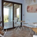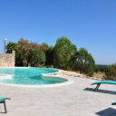 La casa è adagiata su un dislivello che genera una serie di terrazze che offrono una spettacolare e suggestiva vista verso uno dei paesaggi caratteristici della campagna Brindisina: il mare di Torre Guaceto e la campagna con gli ulivi secolari.