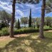 Outside, nature embraces you: shaded garden spaces under pine and cypress trees provide cool, peaceful retreats, while a sun deck above the garage caters to sun lovers. Additional storage and a garage complete the property, ensuring convenience in every detail.