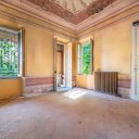 La villa, restaurata con un accurato intervento conservativo, ha ritrovato voce senza perdere autenticità: affreschi e cornici in stucco riaffiorano con delicatezza, ringhiere in ferro battuto e infissi originali si riallacciano al dialogo con il tempo, mentre le superfici solide e i colori storici raccontano la nobiltà discreta di un’epoca.