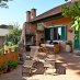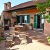 Antistante alla zona giorno troviamo il lussureggiante giardino che si sviluppa anche sul retro della casa dove è posizionato l’ingresso principale. In corrispondenza della sala da pranzo una grande terrazza adiacente al giardino crea una bellissima zona relax parzialmente coperta per pranzare all’esterno, complice il comodo forno a legna con grill posto a lato.