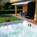 Esterni Villa: un giardino curato dove per momenti di relax, con vasca idromassaggio, doccia all’aperto,portico coperto di 20 mq.