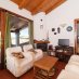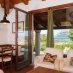 L’ingresso conduce a un ampio open space dove la luce naturale filtra generosa attraverso le grandi vetrate che incorniciano la vista sul mare. I pavimenti in cotto e le travi a vista in castagno scuro contribuiscono a creare un ambiente caldo, accogliente e coerente con la tradizione architettonica gallurese. Gli spazi sono ben organizzati: una zona living confortevole, un’area pranzo e una cucina funzionale, ideale per la vita quotidiana e per accogliere ospiti.