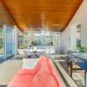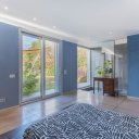 Il design ricercato e le finiture di alto livello, rendono questo immobile unico nel contesto abitativo circostante. La zona giorno, é costituita da un ampio living di circa 65mq con cucina a vista, racchiuso da pareti vetrate che integrano l’ambiente interno con l’ampio patio esterno e con il giardino. La zona notte, allo stesso livello, comprende la camera padronale con giardino pertinenziale, bagno a vista, vasca walk in e cabina armadio.