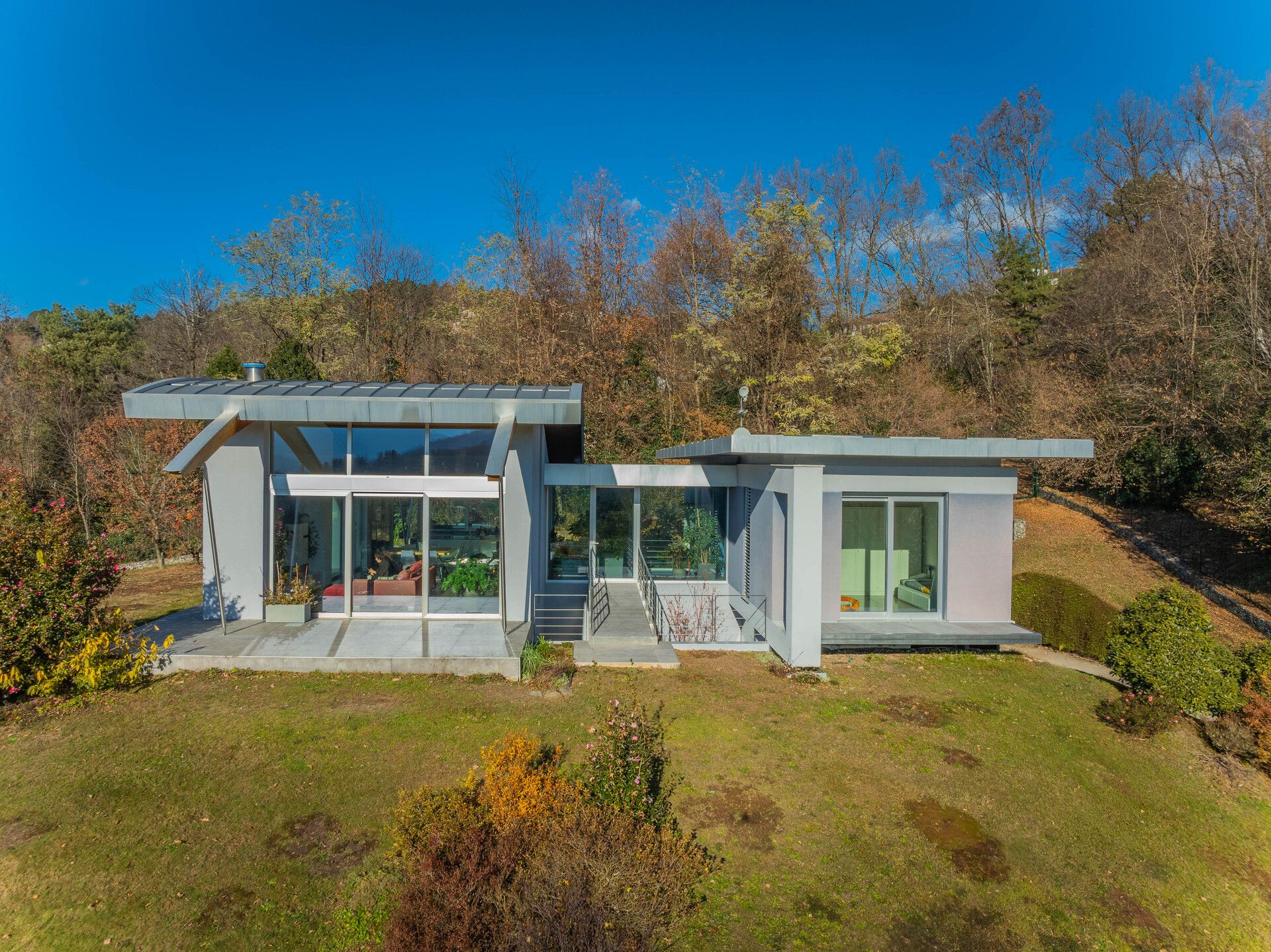 Luino, a pochi chilometri dal centro cittadino e dal confine con la Svizzera, moderna villa di circa 300 mq, in un contesto di assoluta quiete e privacy.