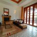 La sala da pranzo si integra armoniosamente con un elegante salotto in stile marocchino, ricco di dettagli che richiamano la tradizione locale.