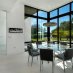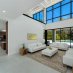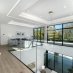 Gli imponenti soffitti a doppia altezza e le vetrate a tutta altezza incorniciano gli ambienti open space, inondando gli interni di luce e valorizzando arredi su misura e uno studio professionale completamente attrezzato. La suite principale al piano terra garantisce privacy e praticità, creando un autentico rifugio all’interno della casa.