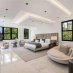 con soffitti alti 7,6 metri, un elegante camino, una sala da pranzo formale con cantina, una sala familiare e una cucina gourmet.